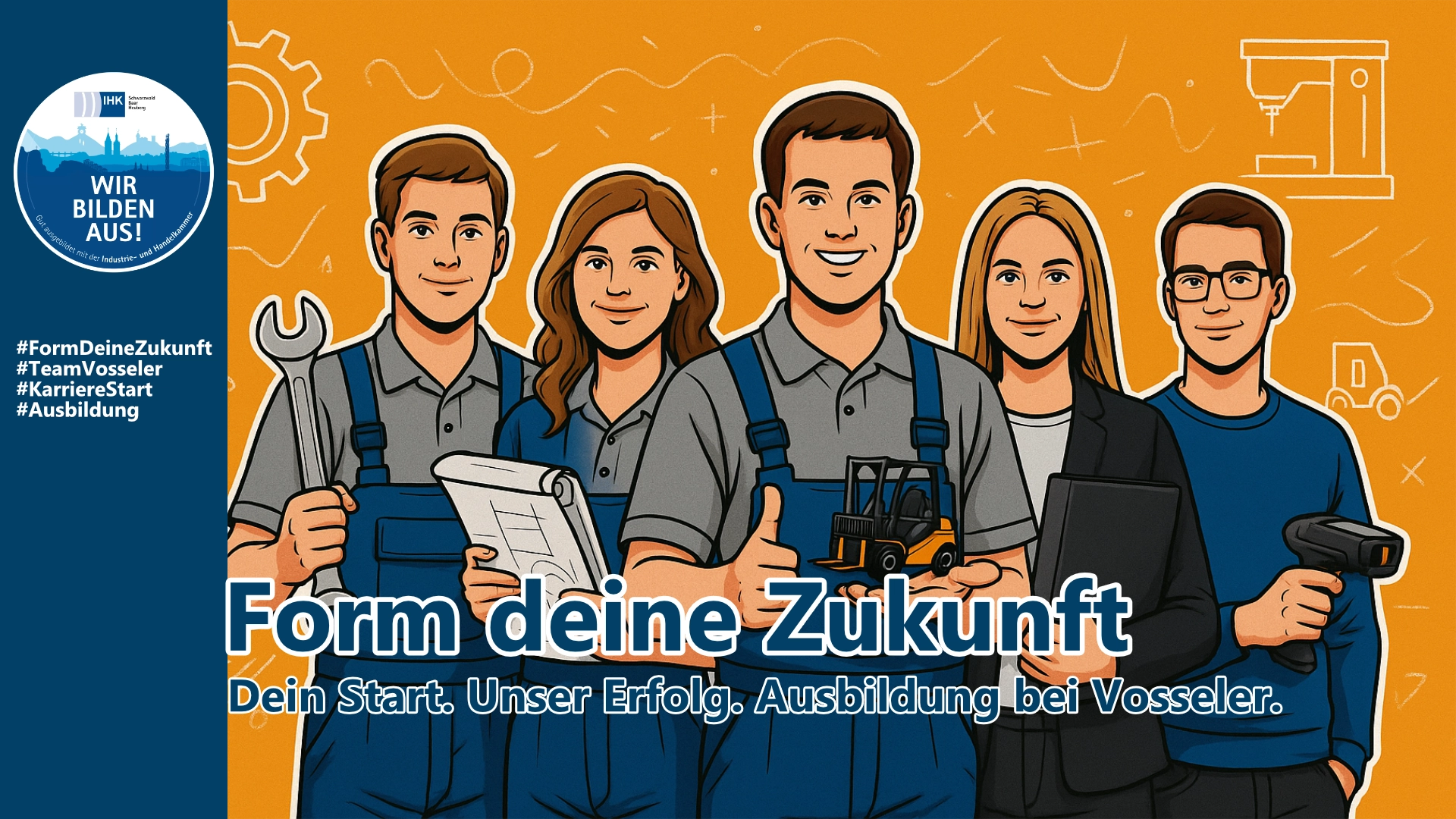 Bewirb Dich jetzt auf einen der Ausbildungsplätze bei Vosseler! Wir suchen junge Menschen, die etwas Besonderes aus sich machen möchten: Denn wir bilden die Experten von Morgen aus. Für unseren Standort Aldingen bieten wir folgende Ausbildungen an.